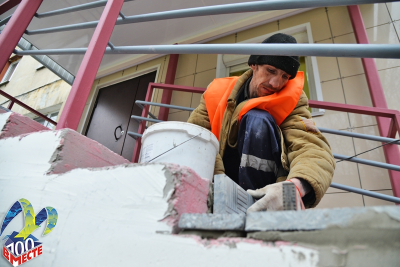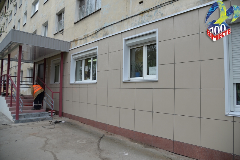 Сегодня рабочие заканчивают обустройство вентилируемого фасада здания и ремонт крыльца. В ближайшее время будет оборудован удобный вход для маломобильных групп населения, оснащенный кнопкой вызова персонала библиотеки.