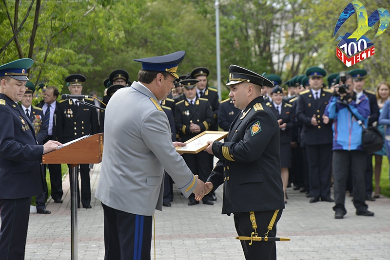 Праздничный митинг прошел в сквере у драматического театра, где установлен памятник работы скульптора Ивана Мельникова. Помимо кадровых пограничников сюда пришли ветераны службы, некоторые - вместе с семьями. По традиции, отличившиеся сотрудники получили ведомственные награды, благодарности от руководства и новые звания.