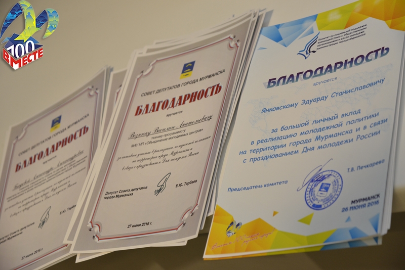 В Мурманске прошла торжественная церемония поощрения работников молодежной политики. Муниципальное объединение молодежных центров, а так же руководителей городских молодежных учреждений наградили благодарностями Мурманской областной Думы. Городской комитет по социальной поддержке, взаимодействию с общественными организациями и делам молодежи удостоил наградами наиболее активных мурманчан, посвятивших свою жизнь работе с молодежью, а также 11 молодежных центров и городской Дом молодежи.