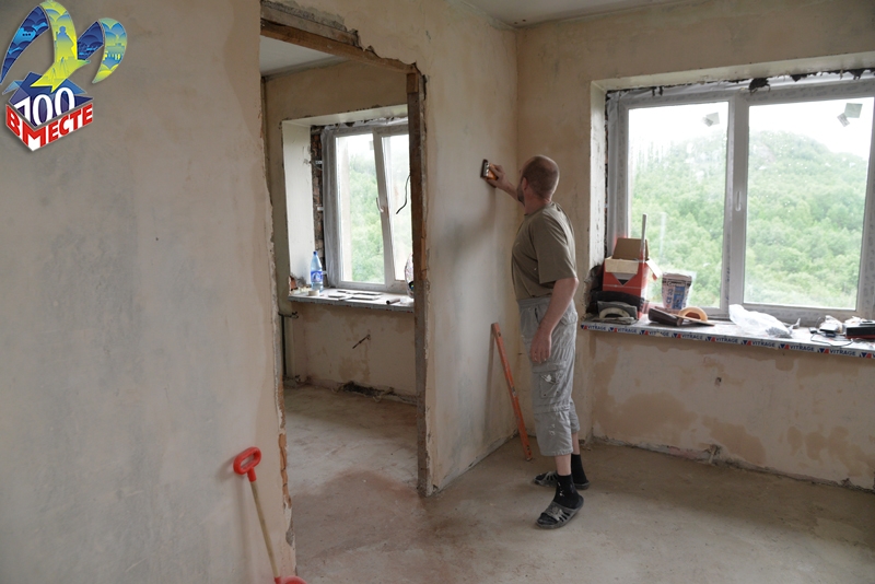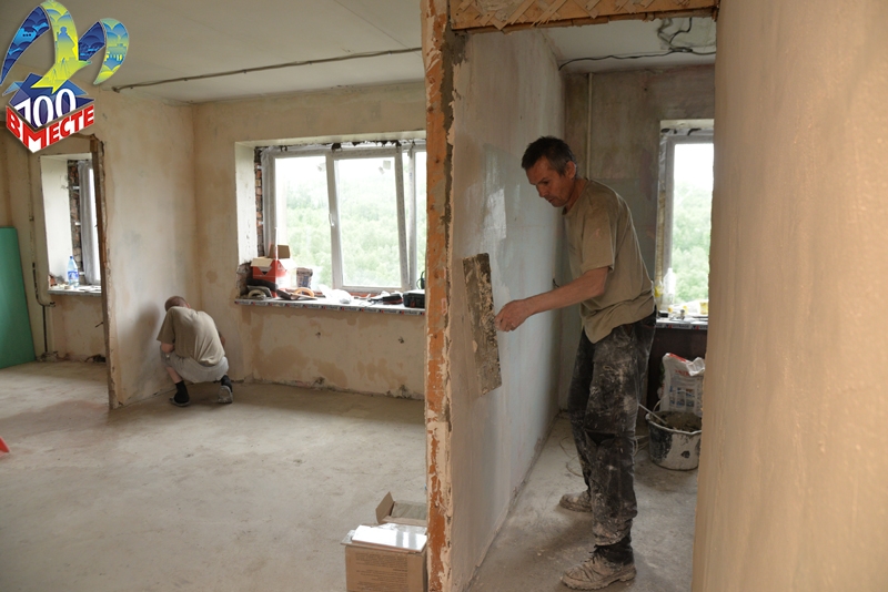 Глава администрации осмотрел две квартиры по улице Молодежная и отметил высокое качество и хорошие темпы выполнения работ. В обеих квартирах будут заменены окна и двери, инженерное оборудование и электропроводка, обновлены стены, полы, потолки, санузел. Одна из квартир практически готова к приемке.