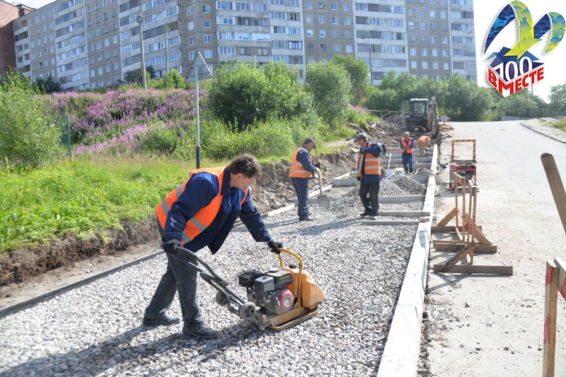 Сейчас на капитальном объекте ведутся работы по установке бортового камня, устройству щебеночного основания тротуаров и ступеней.
