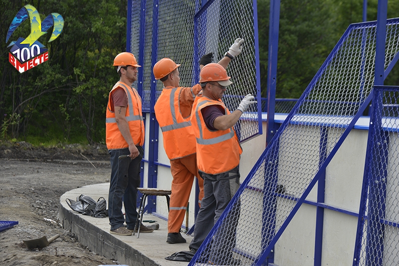 Полным ходом идет модернизация хоккейного корта. Строители уже устанавливают новые борта хоккейной коробки. В скором времени здесь появятся трибуны, модульные раздевалки. Модернизируют и систему освещения: на каждой из 10 опор установят по 2 светодиодных прожектора.