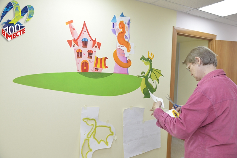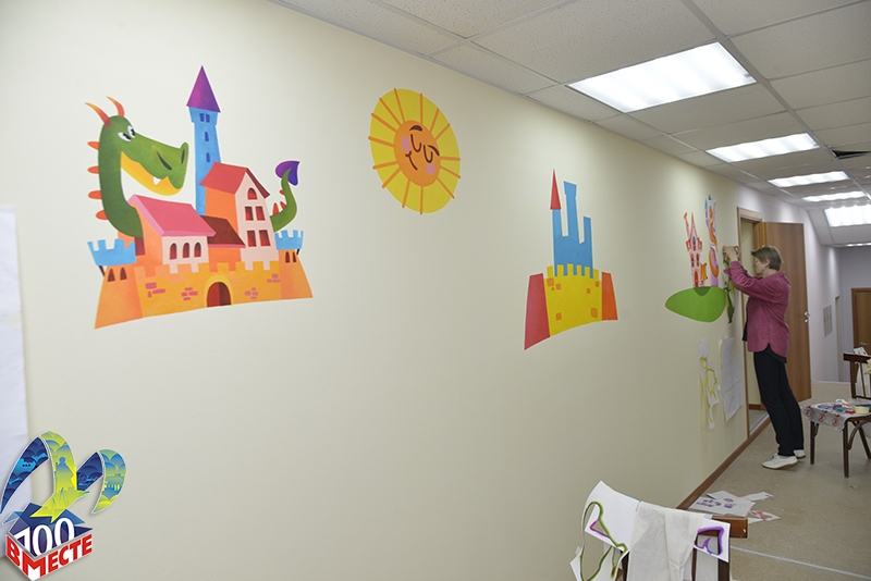Совсем скоро в чистых светлых залах станет еще уютнее – одну из стен украсят герои детских книг: рыцари, принцессы, драконы. Сейчас художники трудятся над прорисовкой персонажей. Будущий интерьер продуман до мельчайших деталей – даже стеллажи для книг будут выполнены в виде средневековых замков и составят отличную компанию рыцарям, драконам и замкам, нарисованным на стене.