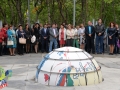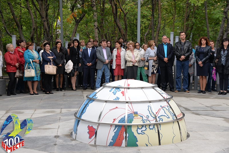 В центре зеленой зоны появилась необычная композиция – полусфера с нанесенным на нее изображением Северного морского пути, очертаниями океанов и материков.