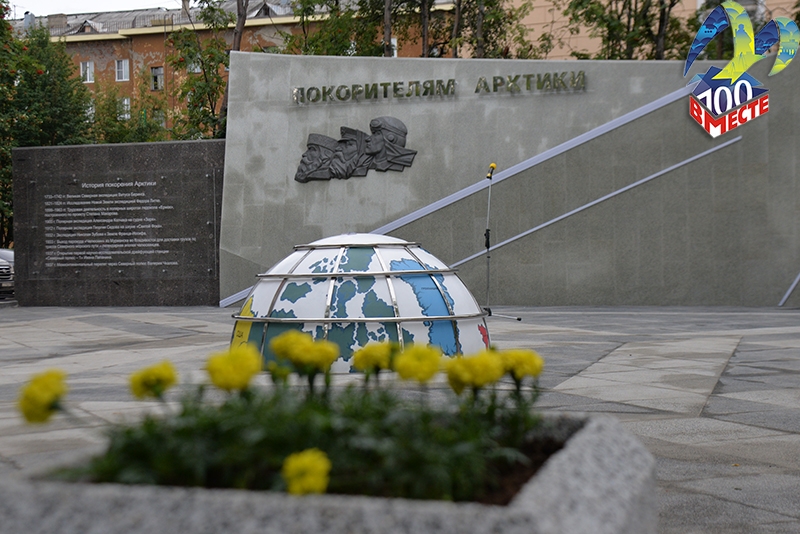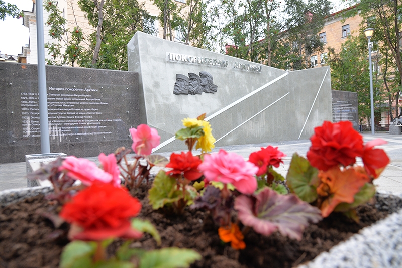 В сквере установлены новые ограждения, пешеходные дорожки выложены гранитной плиткой. Строители демонтировали старый полуразрушенный барельеф «Покорителям Арктики» со стены жилого дома, уменьшенная копия барельефа размещена на центральной стеле.
