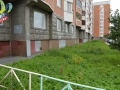 Часть замечаний, выявленных во время прошлой проверки, коммунальщики устранили. При этом надписи на фасаде дома остались не закрашенными, зеленую зону не огородили, покос травы за это время не провели.