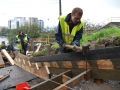На сегодняшний день рабочие разобрали конструкции подпорных стен и асфальтобетонное покрытие, выполнили работы по устройству железобетонного марша лестницы. Для безопасности и удобства маленьких пациентов и их родителей установят перила и пандус, а также обустроят газон. Новая лестница будет состоять из трех бетонных пролетов.