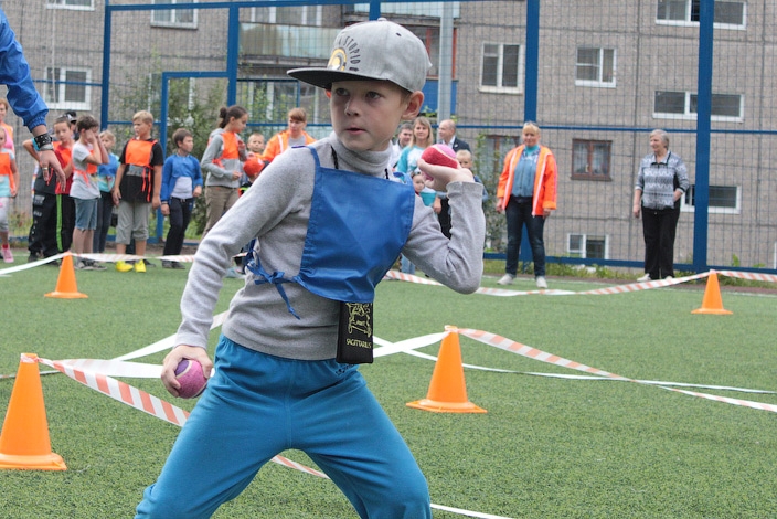 А началось все как обычно - с разминки. Затем, разогревшись, юные спортсмены приступили к биатлону. Игровую версию этого популярного вида спорта организовал тренер СДЮСШОР № 3 города Мурманска Михаил Воронков. В отличие от настоящего биатлона здесь вместо стрельбы надо кидать в мишень мяч и бежать, а не скользить на лыжах. За промах - штрафной круг.
