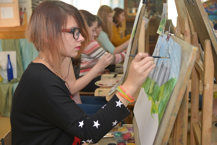 Всего в Первомайском Доме детского творчества работает 32 талантливых педагога. Например, в изостудии с ребятами занимается член Всероссийской творческой общественной организации "Союз художников России" Надежда Игнатьевна Маркина, настоящий мастер, участник различных творческих выставок.
