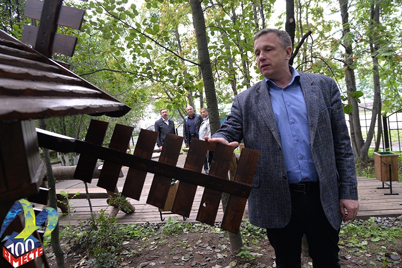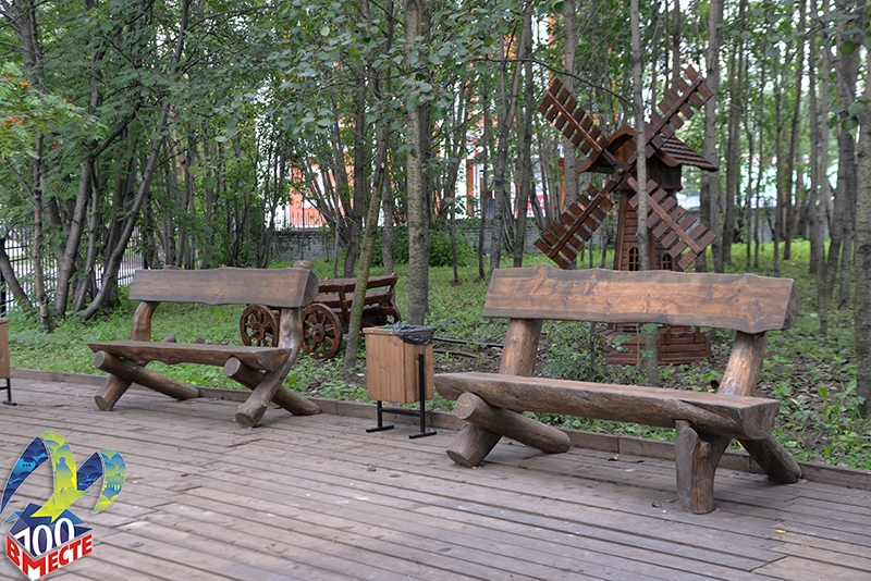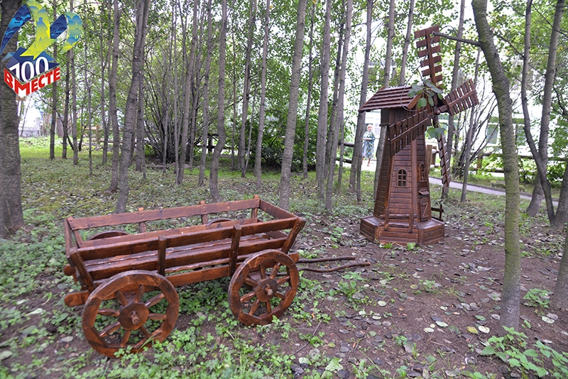 За свою сказочную оригинальность сквер уже получил название «У Лукоморья». Эксклюзивные скамейки, изготовленные по специальному заказу, урны, необычные фигуры в виде мельницы и повозки, деревянное ограждение – все в едином стиле. Также здесь установят новое освещение. Ждет приятный сюрприз и молодых отцов: в скором времени в сквере появится стенд, на котором можно будет поместить поздравления, гирлянды, шары.