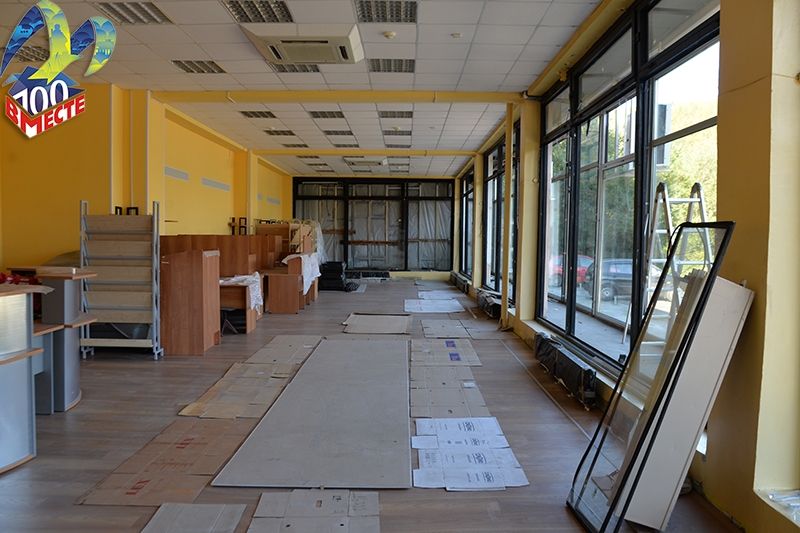 Ремонт близится к завершению. В здании уже проведены косметические работы, увеличена санитарная комната, заменены батареи, окна, установлен потолок со светодиодными лампами. В оконных проемах будут размещены инсталляции на литературные темы.