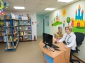 Обновленная библиотека оформлена в стиле средневекового рыцарского замка. Для самых маленьких читателей выделена игровая зона со стеллажами-домиками. В читальном зале ждут юных посетителей новые книги.