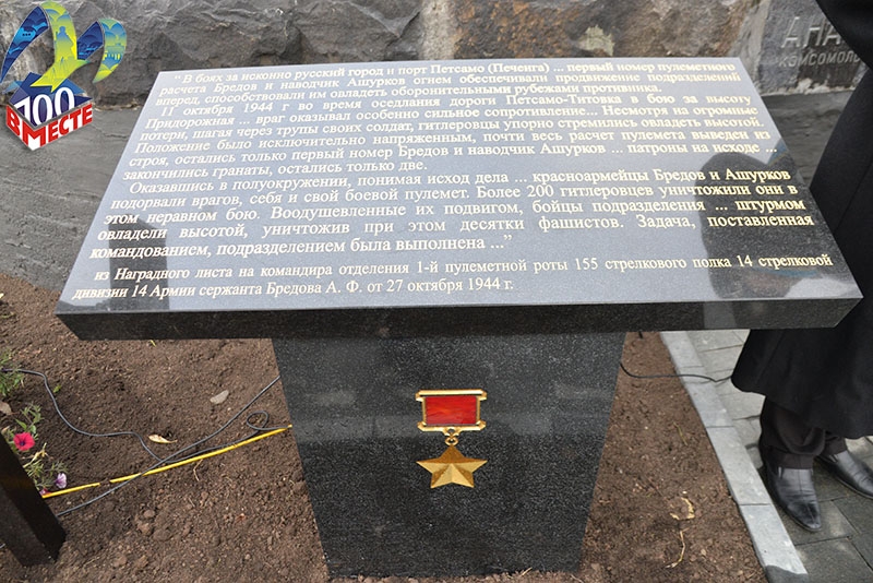На памятнике была установлена доска с выпиской из наградного листа с рассказом о подвиге Анатолия Бредова. Выполнено асфальтирование пешеходной зоны, установлены дополнительные светильники, появилась тротуарная плитка из натурального гранита, а также скамейки.
