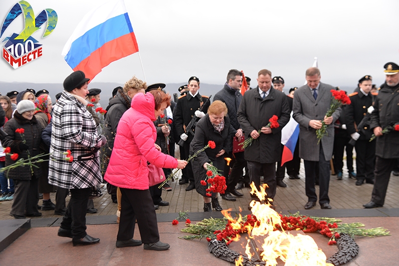 Завершился митинг минутой молчания и возложением цветов к мемориалу.
