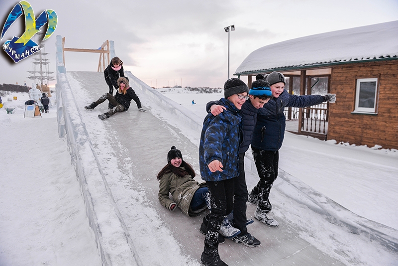 В Первомайском округе, в районе дома № 101 на проспекте Кольском мастера изготовили ледяной лабиринт и три горки разной высоты, а также юрту с представителями малых народов Севера и фигуры белых медведей.