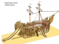 Название детского городка – «Сказка» – стало определяющим при выборе малых архитектурных форм и игровых комплексов. Герои и стилистика любимых русских сказок будут окружать всех посетителей парка. В центре городка разместится практически настоящий летучий корабль, на площадке вокруг него – герои одноименного мультфильма. Игровой комплекс «Средневековье» с горками и препятствиями будет оформлен и сказочными фигурами богатырей. На площадке для малышей разместится избушка Бабы-Яги и ее хозяйка. В зеленой зоне отдыха установят фигуры 12 братьев-месяцев и юной падчерицы.