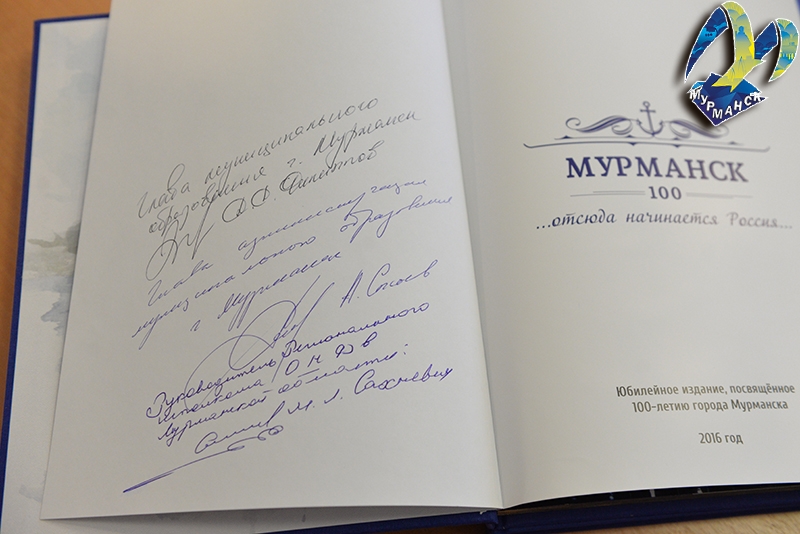 Экземпляры книг, которые доставят руководству южных городов, подписали глава муниципального образования город Мурманск Дмитрий Филиппов, глава администрации Мурманска Андрей Сысоев и руководитель регионального исполкома ОНФ в Мурманской области Максим Сахневич.