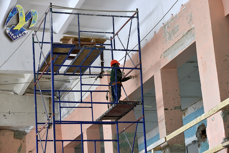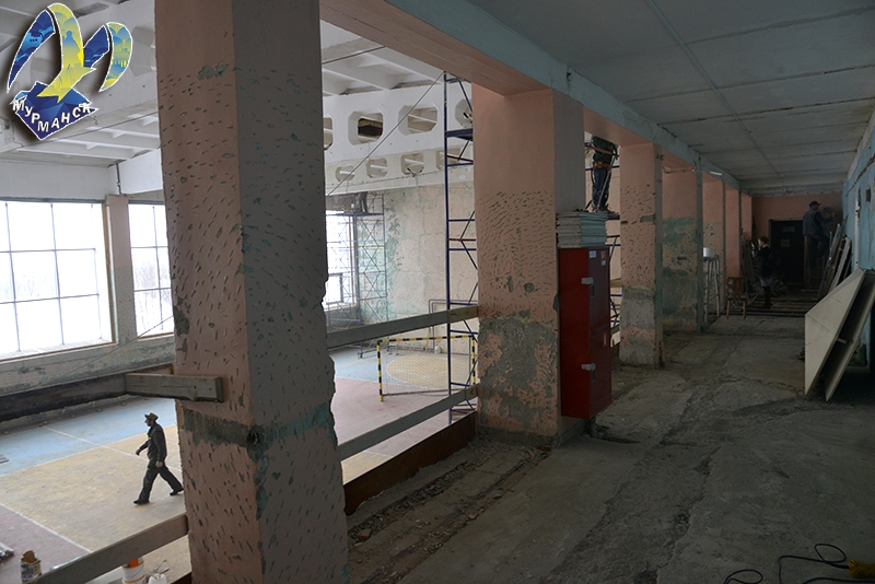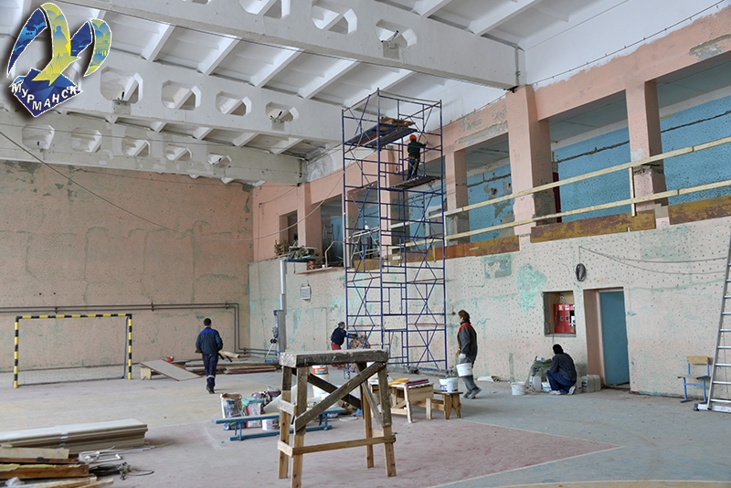 В большом зале городского спортивного центра «Авангард» в самом разгаре ремонтные работы. Уже демонтирована старая коробка корта. Строители готовят стены к отделке.