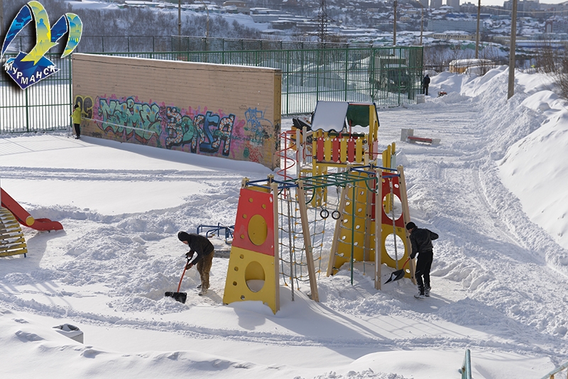 В числе вверенных «Авангарду» объектов – площадка в районе дома №10 по улице Маклакова. Сегодня здесь и трудится спецтехника, и выполняется уборка вручную. К слову, эта спортплощадка стала одной из первых, модернизированных в городе, и была признана лучшим спортивным сооружением Мурманской области.