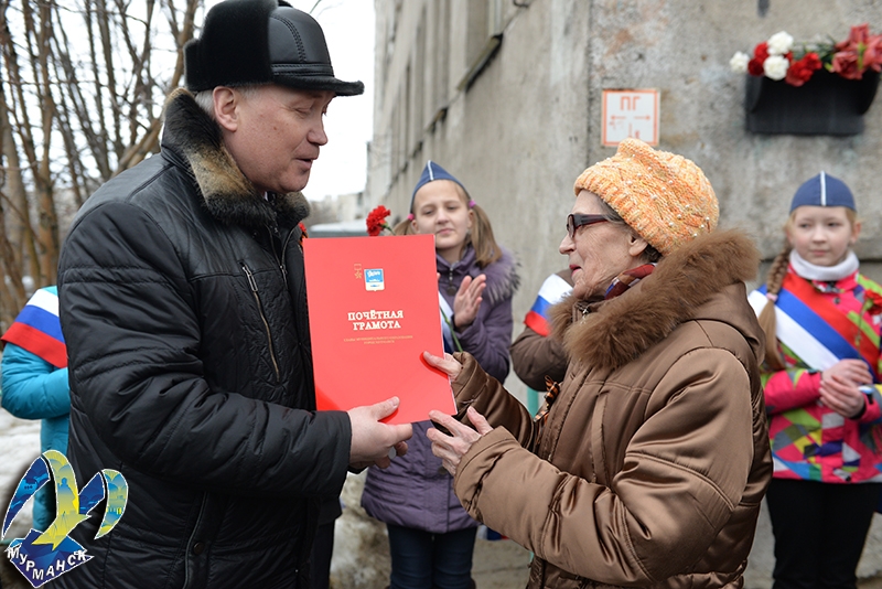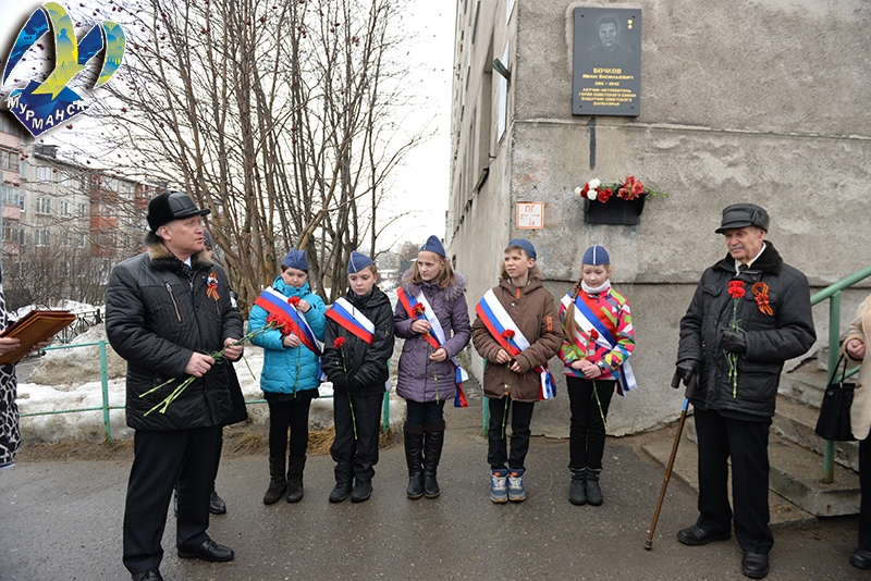 К мемориальной доске, установленной на доме № 1 по улице Бочкова, отдать дань памяти герою пришли ветераны Великой Отечественной войны, депутаты Совета депутатов города Мурманска, представители Управления Первомайского округа, юные мурманчане.