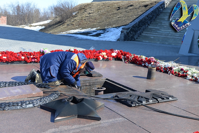 Сегодня в Мурманске приступили к замене оборудования Вечного огня на подиуме мемориального комплекса Защитникам Советского Заполярья.