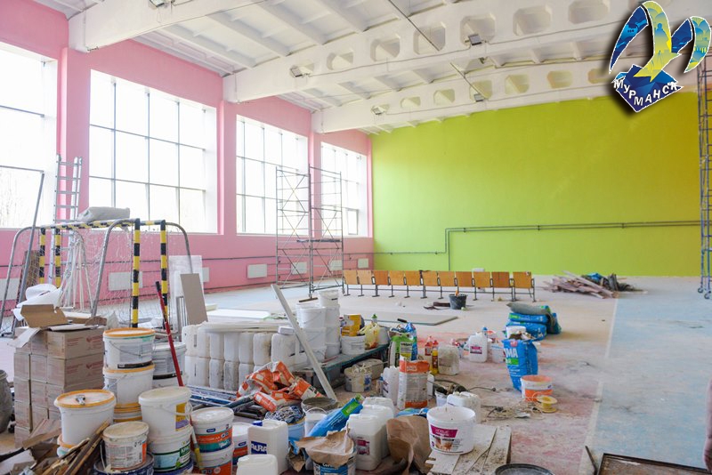 В большом зале городского спортивного центра «Авангард» продолжаются ремонтные работы. Рабочие завершили обновление потолка, выровняли и покрасили стены, заменили вентиляцию. Почти закончен ремонт балкона-трибуны и четырех раздевалок для спортсменов.