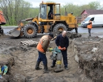 Сегодня сотрудники Управления дорожного хозяйства заканчивают восстановление поврежденного участка ливневой канализации на улице Героев-североморцев 9 корп.1.