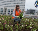 Сотрудники предприятия «Мурманские городские парки и скверы» продолжают работу по высадке цветов. Этим летом мурманчан ожидает сюрприз: центральная клумба на площади Пять Углов сменит оформление.