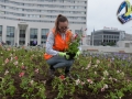 Сотрудники предприятия «Мурманские городские парки и скверы» продолжают работу по высадке цветов. Этим летом мурманчан ожидает сюрприз: центральная клумба на площади Пять Углов сменит оформление.