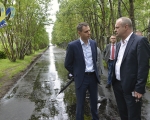 Сегодня глава администрации города Мурманска Андрей Сысоев в рамках традиционного объезда проверил ход работ по ремонту тротуаров на улице Челюскинцев.