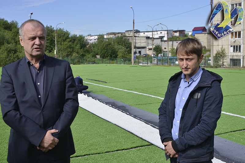 Сегодня глава администрации города Мурманска Андрей Сысоев в рамках традиционного объезда проверил ход работ по укладке искусственного покрытия на стадионе школы №50 (ул. Капитана Орликовой, 35). В этом году здесь полностью обновится большое футбольное поле, на нем будет уложен искусственный газон, установлен новый спортивный инвентарь.
