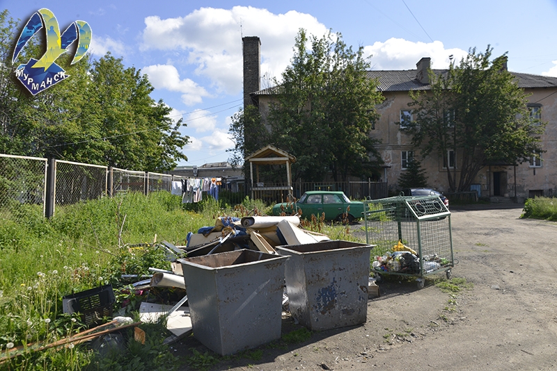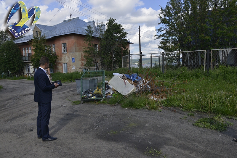 Сегодня депутаты городского Совета совместно со специалистами управления Первомайского округа Мурманска провели рейд по проверке работы управляющих организаций. Во дворе дома № 26 по улице Фадеев ручей проверяющих встретила заваленная мусором контейнерная площадка и заросли густой травы.