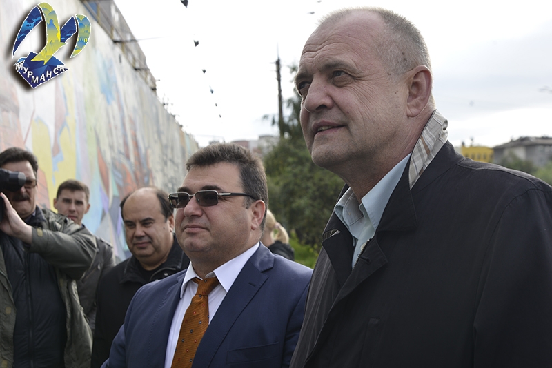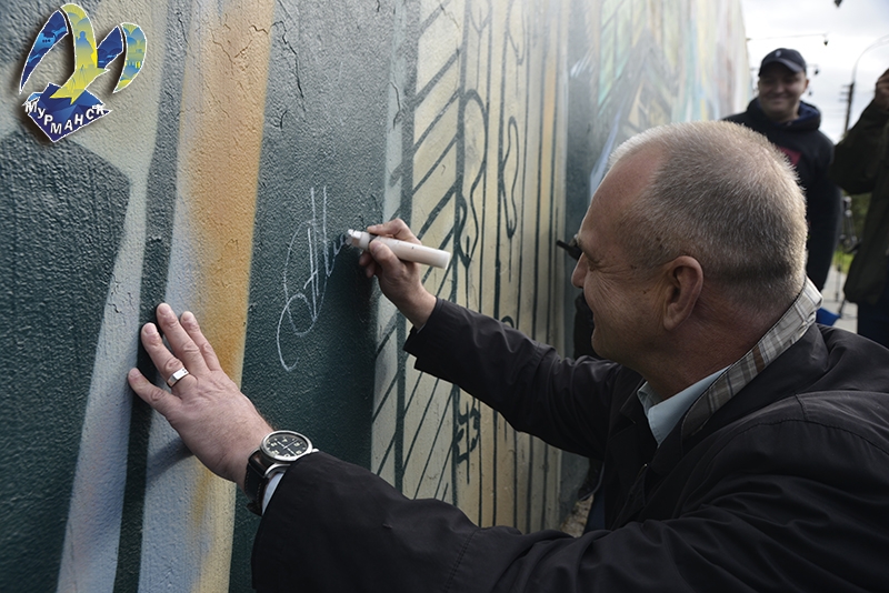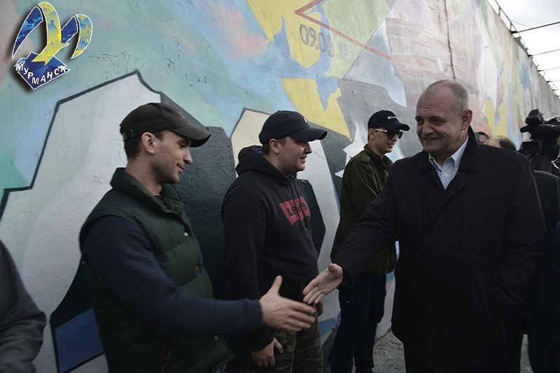 Сегодня глава администрации города Мурманска Андрей Сысоев и первый заместитель генерального директора ФГУП «Атомфлот» Мустафа Кашка встретились с художниками, которые преобразили подпорную стену на улице Папанина, 1.