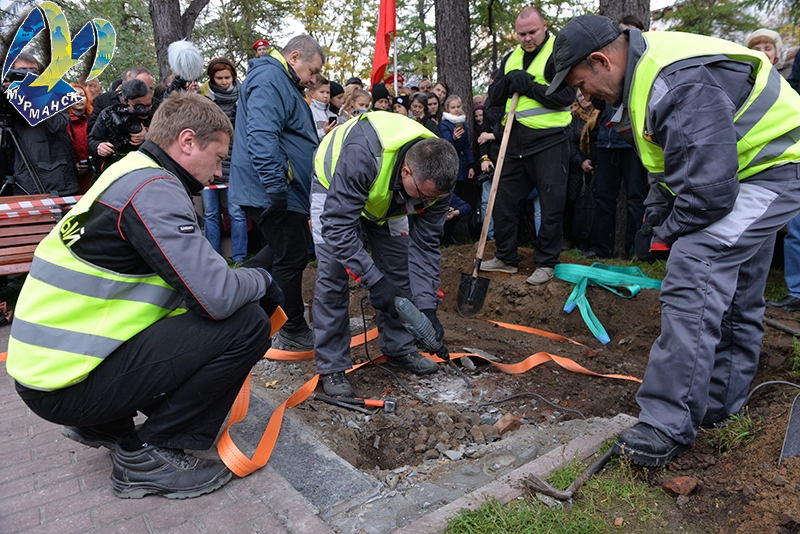 Вскрытие капсулы было сопряжено с некоторыми трудностями, ведь прошло пятьдесят лет, и определить ее точное местонахождение в земле было достаточно проблематично. Техническая работа по ее извлечению началась еще ранним утром. Была подключена наблюдательная комиссия в состав, которой вошли очевидцы события полувековой давности и участники общественной организации «Мурманск – город-герой».