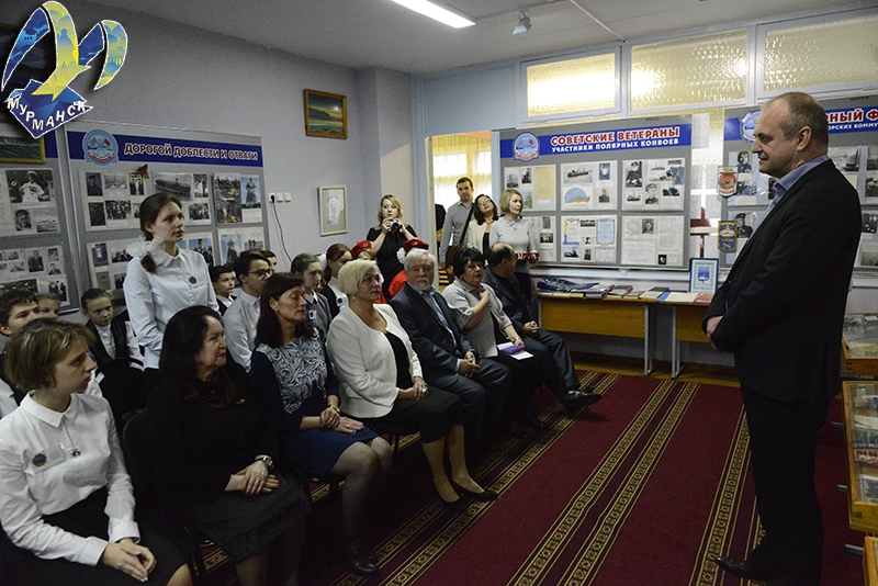 Сегодня глава администрации города Мурманска Андрей Сысоев посетил гимназию № 9, где в музее истории Полярных конвоев состоялось посвящение пятиклассников в экскурсоводы. Ежегодно учащиеся 5, 8 и 11-х классов проводят экскурсии в музее на русском и английском языках.