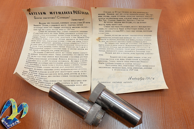 Сегодня состоялась торжественная церемония передачи Мурманскому областному краеведческому музею письма к жителям Мурманска 2017 года от мурманчан 1967 года.