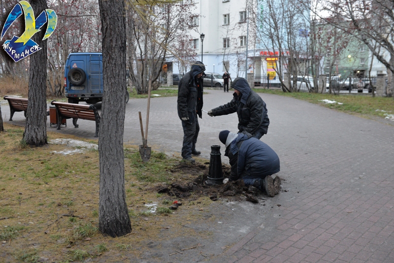 Однако, не всегда благоустройство и освещенность того или иного места отдыха горожан зависит от специалистов муниципального учреждения. Так, недавно в сквере на улице Ленинградской были сломаны схема парковой зоны и опора освещения. Сегодня специалисты муниципального учреждения «Мурманские городские парки и скверы» приступили к их восстановлению.