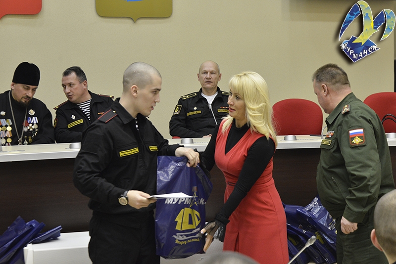 На этот раз проводить новобранцев пришли и юнармейцы из мурманской школы № 4. От администрации города Мурманска будущим защитникам были вручены подарочные наборы.