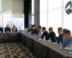 Сегодня глава администрации города Мурманска Андрей Сысоев встретился с участниками Высшей лиги КВН - игроками команды «Морская академия», абсолютными чемпионами и обладателями «Кубка Арктики» по интеллектуальной игре «Что? Где? Когда?» — командой «Норманны», а также с представителями организации «Юкигассен Мурманск».