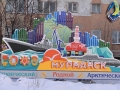 Композиция состоит из 5 элементов, выполненных из акрилового композитного материала. На ней изображены северное сияние, военный корабль, подводная лодка, портовый кран, буровая платформа. Сияет конструкция благодаря установленным на ней кластерным и открытым светодиодам. При ее производстве были использованы высококачественные и морозоустойчивые материалы, а значит, новому украшению будут не страшны суровые погодные условия.
