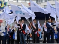 Торжественная церемония прощания со школой открылась массовым флеш-мобом школьных знамён и праздничным шоу под открытым небом. В концертно-развлекательной программе свои хиты для участников праздника исполнили лучшие детские творческие коллективы школ и учреждений дополнительного образования.