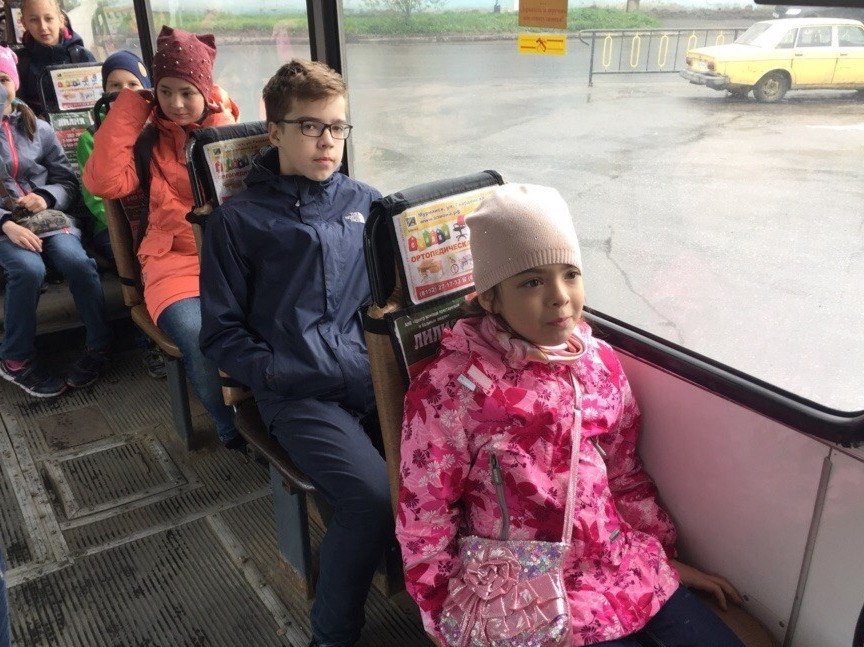 После экскурсии дети отправились путешествовать по улицам города на троллейбусе.