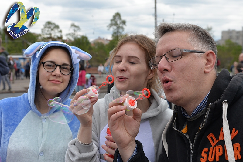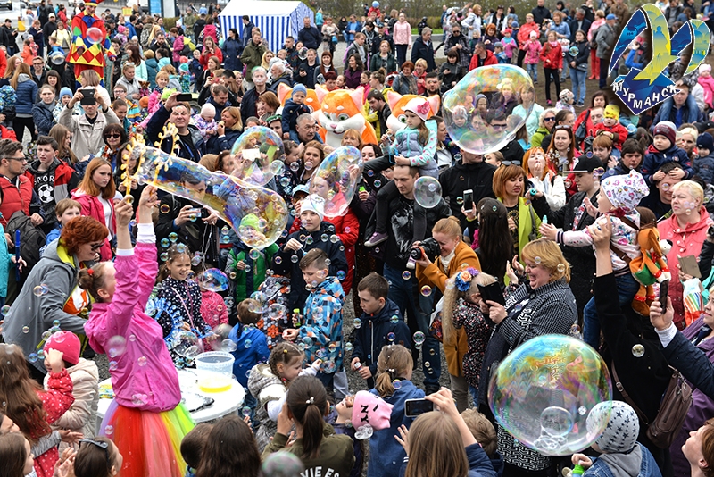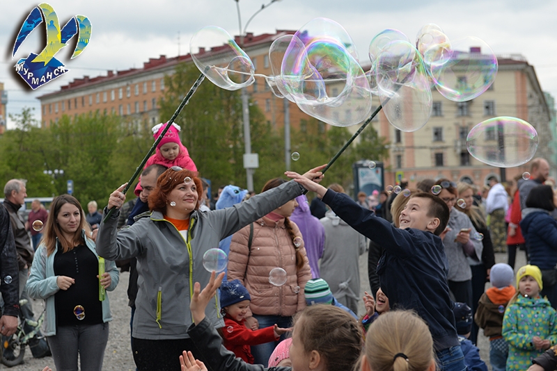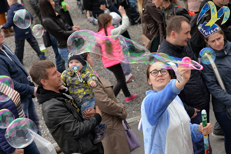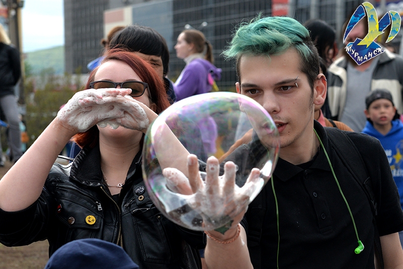 На центральной площади города прошел традиционный семейный фестиваль «Мой мыльный Мурманск», организованный при поддержке мурманского Дома молодежи и Объединения молодежных центров.