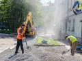 Проект предусматривает благоустройство проезда и тротуаров, пешеходного ограждения, замену люков колодцев, прокладку резервных трубопроводов для наружного освещения, восстановление газонов, установку малых архитектурных форм.