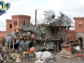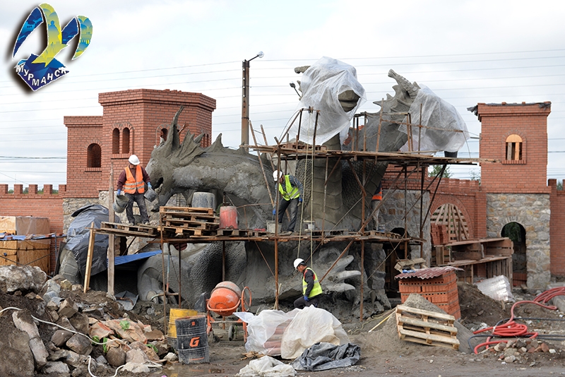 Строители уже возвели стилизованную крепостную стену с входом и башнями. Украшением городка станут 64 сказочные фигуры, выполненные известным скульптором Владимиром Колесниковым по мотивам сказок А.С. Пушкина.