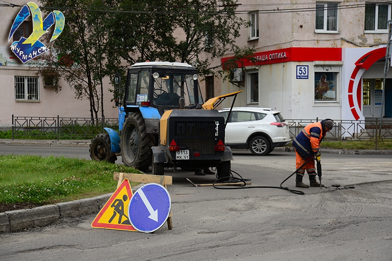 На участке около Мурманской областной клинической больницы им. П.А. Баяндина сняли старое покрытие, заменили люки колодцев, подготовили основание для нового дорожного полотна.