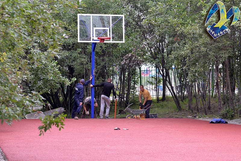 Полным ходом идет обновление территории Мурманского политехнического лицея. Уже в конце месяца здесь появятся футбольное поле с искусственным газоном, а также игровая зона для стритбола.