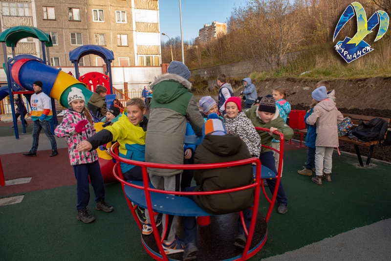 Вместо устаревшей детской площадки появилась новая с травмобезопасным покрытием. Спортивный комплекс поделен на две части: для самых юных мурманчан и ребят постарше. Здесь установлены игровые и гимнастические комплексы, турники, рукоходы, брусья, скамейка для пресса.