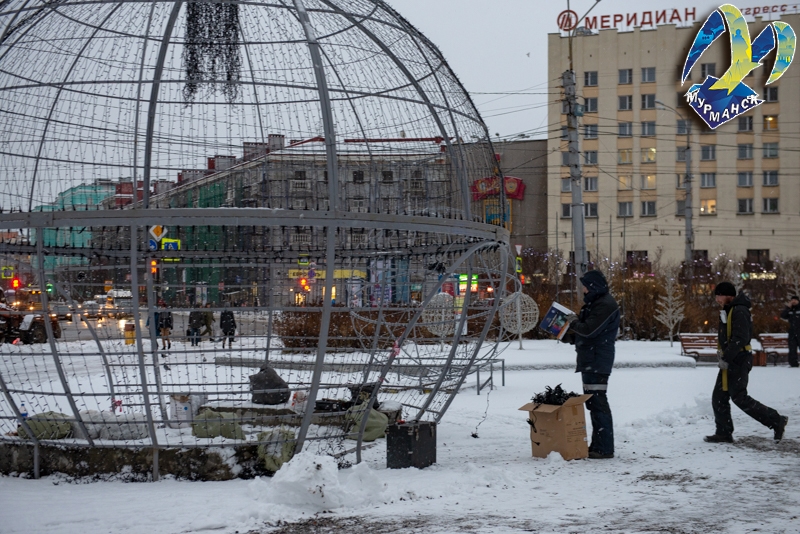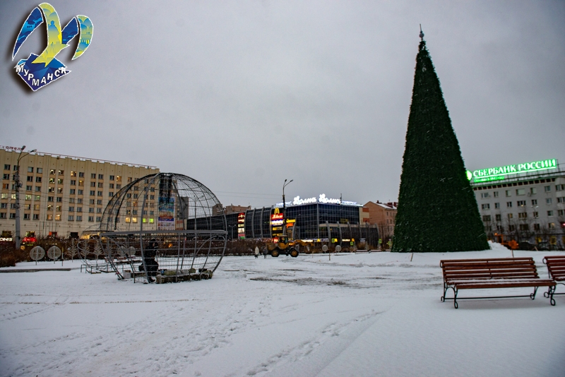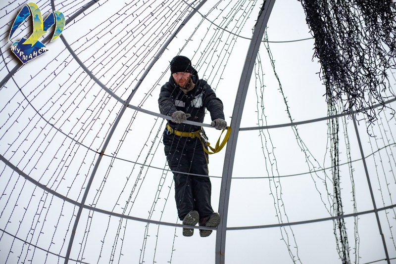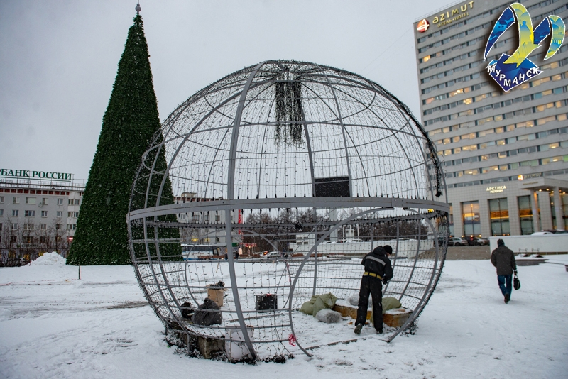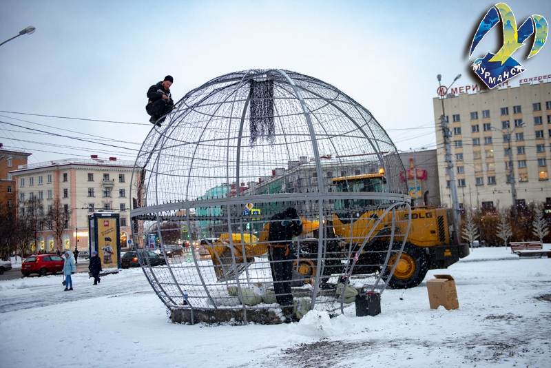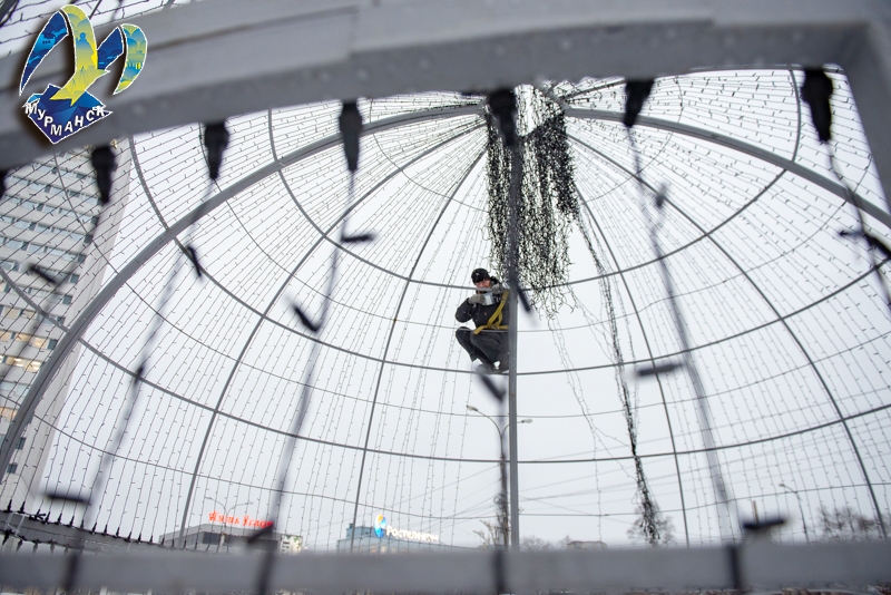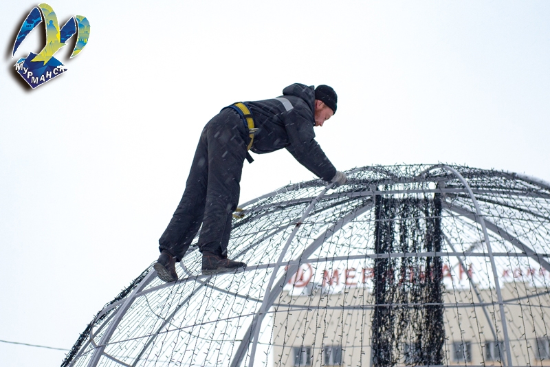В областном центре продолжается монтаж праздничной новогодней иллюминации. Часть объектов уже радует мурманчан с наступлением темного времени суток.