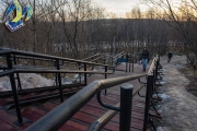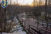 Обустройство пешеходной связи началось в 2017 году, здесь появились фонари, тротуары и ограждения, устроены три деревянных лестницы с пандусами.
